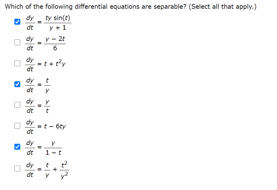 1 Point Which of the Following Are Separable Differential Equations